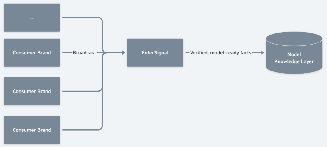 EnterSignal is the live data bridge between consumer brands and generative‑AI assistants. We stream verified, model‑ready “enterprise facts”—prices, inventory, promotions, policy updates, and more—so assistants always speak with up‑to‑the‑second accuracy.